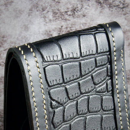 Deccan Obsidian – a deep volcanic black with croc-embossed texture