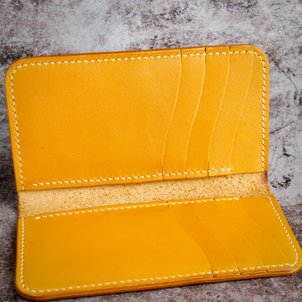 Each wallet is hand-cut and saddle-stitched using tear-resistant Vinymo MBT thread. The long format suits cash notes, IDs, and cards with ease, while the edges are burnished and waxed for comfort and durability. Finished with our signature natural balm, it will gain character and depth as it ages.