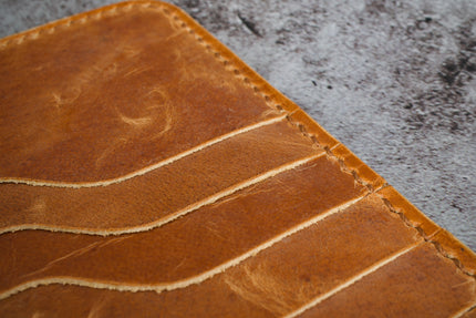 Each piece is cut by hand and saddle-stitched using tear-resistant Vinymo MBT thread. The edges are burnished smooth and sealed with our signature natural wax balm for durability and touch.